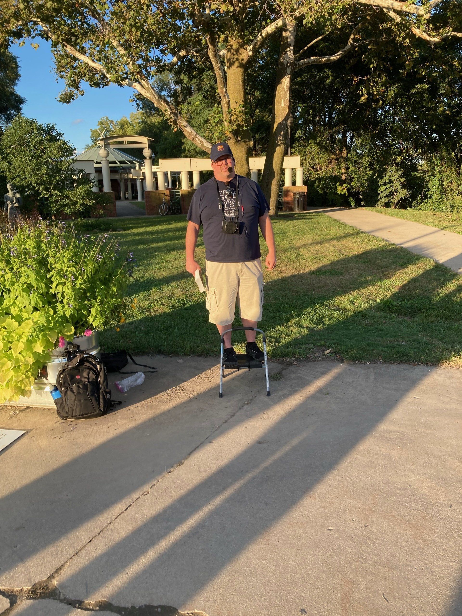 The guy in the black shirt is our evangelist.