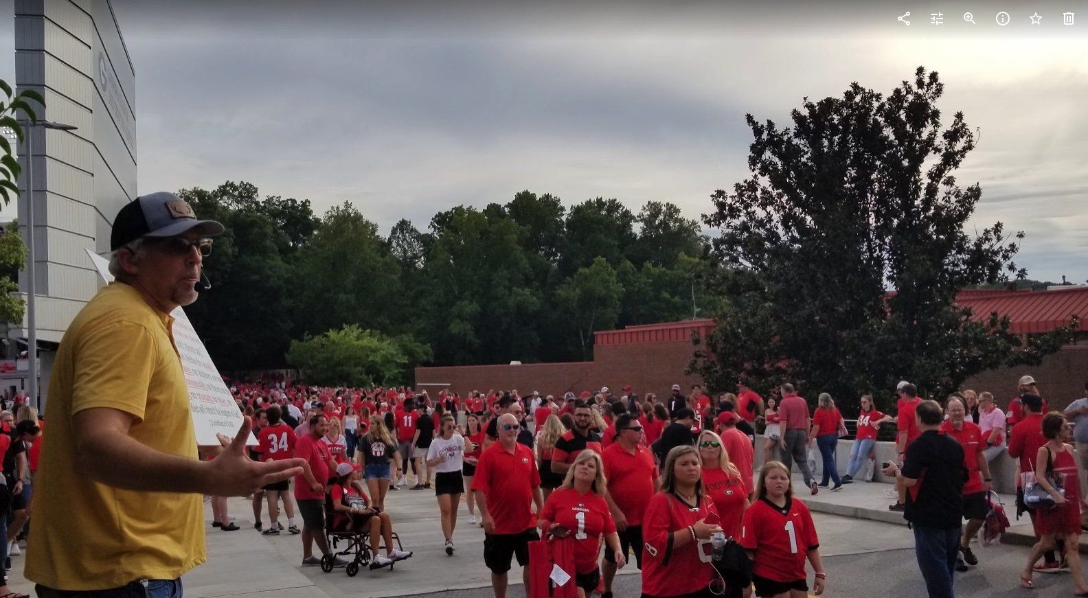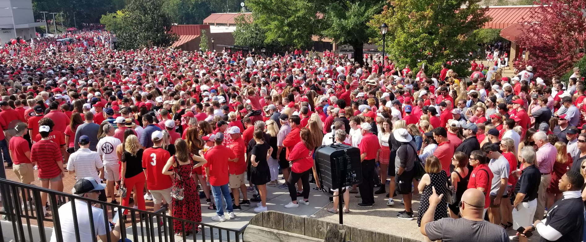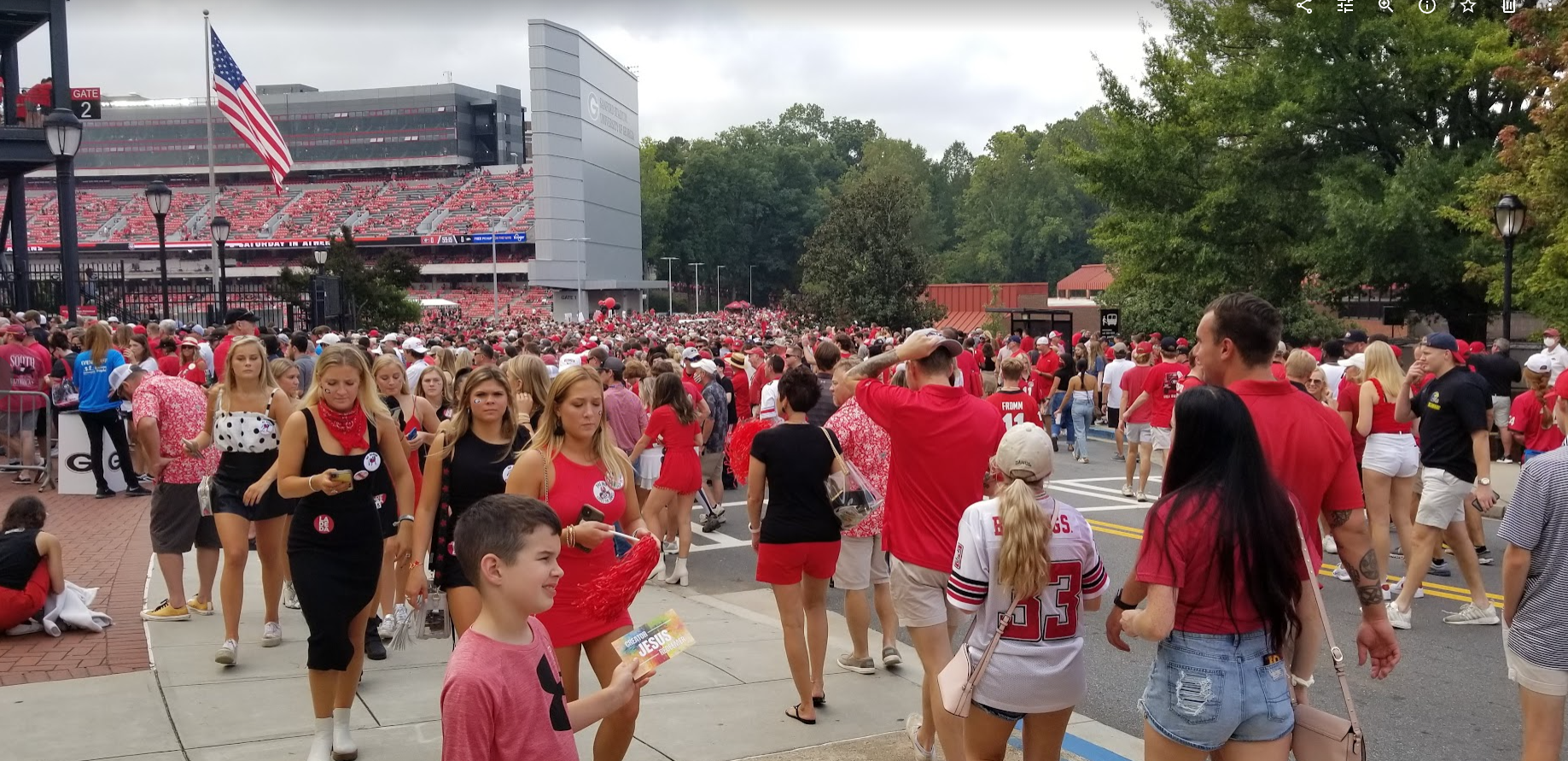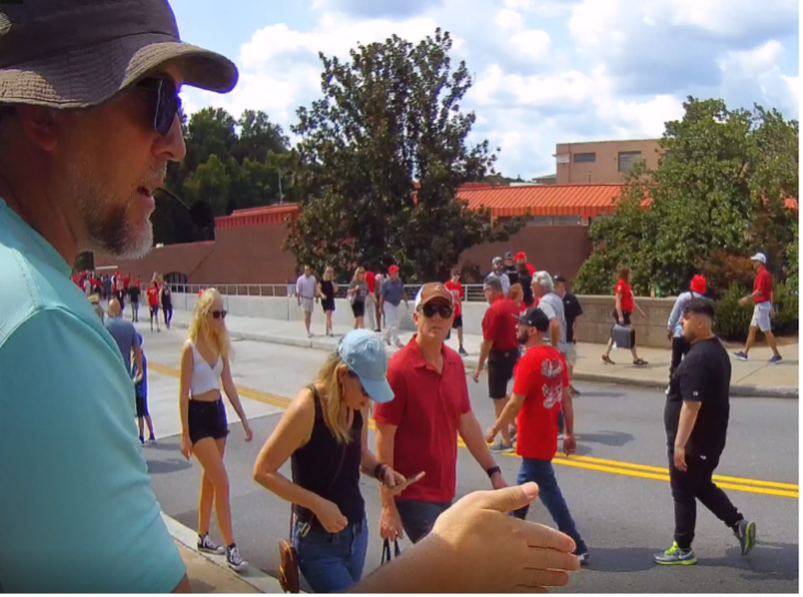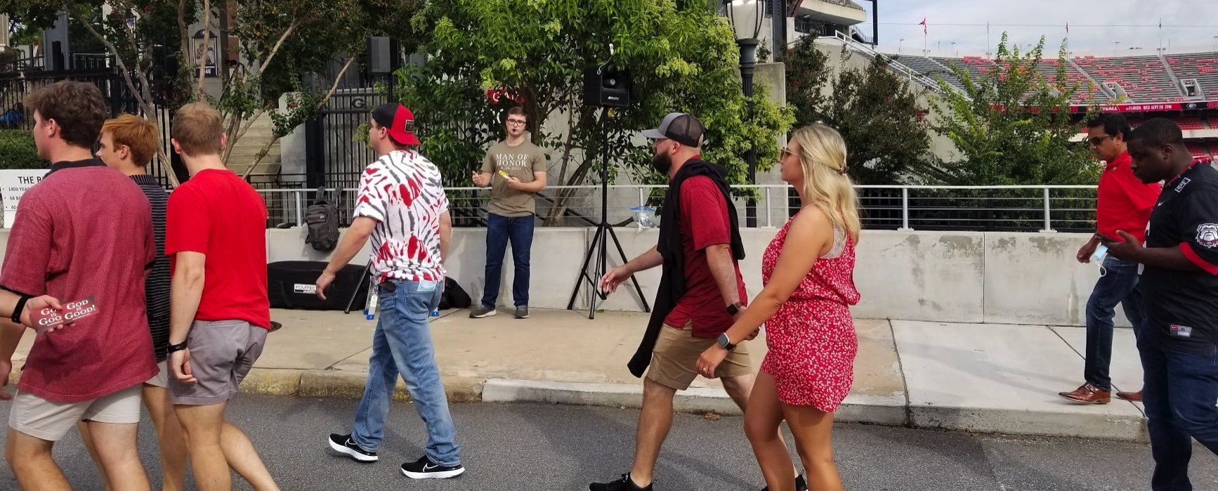 We arrived at Sanford Stadium about 3 hours prior to Kick-off. Seeing “College GameDay” had a booth set up right under the scoreboard and not wanting to interfere in any way with that we adjusted our preaching location to the other side of gate 2. While we were farther away from the bridge, it ended up being an excellent spot that we may take advantage of for other games. It actually placed us on higher ground and allowed our gear to be set up so we did not take up any of the sidewalk.