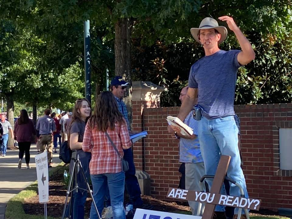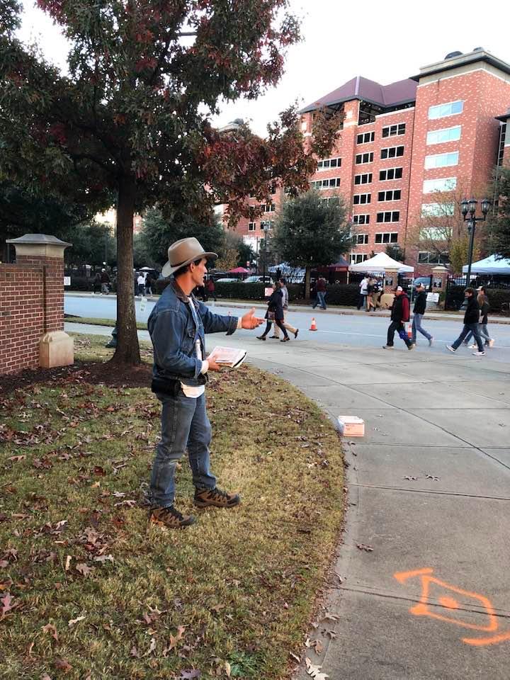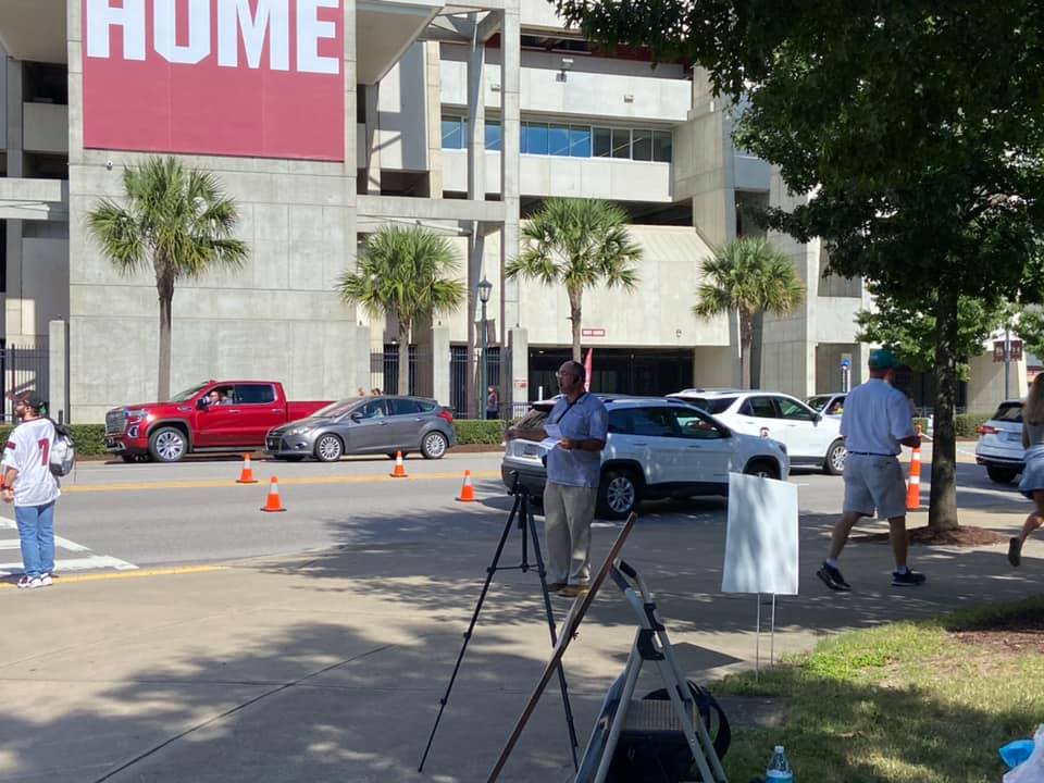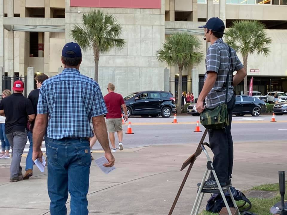 There were 12 faithful men and women scattered out along Bluff Avenue unashamedly sharing the Good News of Jesus Christ to fans headed to the Palmetto Bowl! Six of the men were publicly heralding Christ’s Saving Gospel while the other faithful soldiers of Christ were ministering through tract distribution and conversations as well.