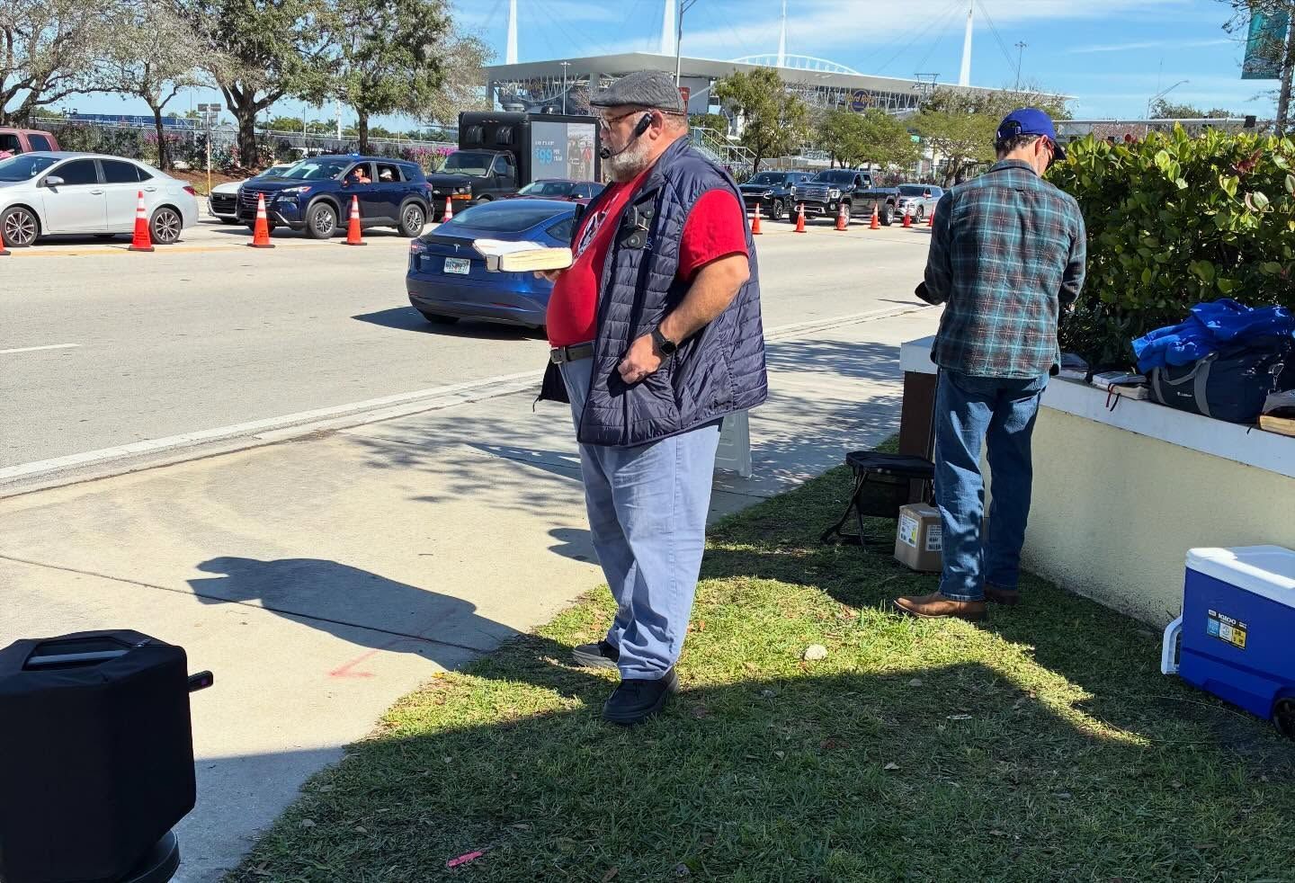 Ministry will take place around the Hard Rock Stadium. The location is good for preaching Christ, ministering to people as they respond and referring them to a Bible teaching church for discipleship.