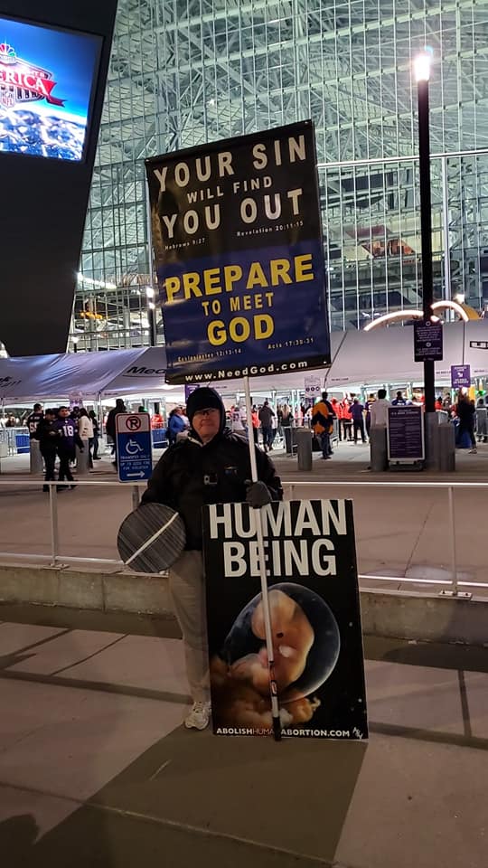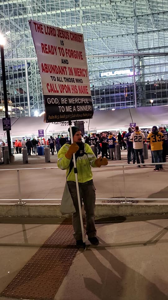 9/26 - Brother David and I Preaching The Gospel outside of the US Bank Stadium before the Minnesota Vikings Football game.