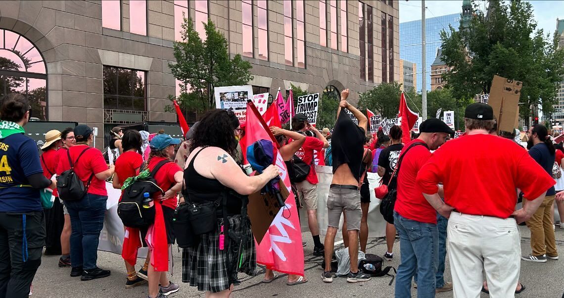 "Second day at the Republican National Convention turned out to be a raucous one. A small group of Organized Demonstrators spent the morning chanting and screaming through their loudspeakers profanities rejecting the Glorious Gospel whilst denigrating Donald Trump and his efforts to be elected as the next President. Our team of dedicated Evangelists, pressed on preaching the good news and before you knew it the demonstrators had all scattered and sanity was restored. Hallelujah Praise the Lord."