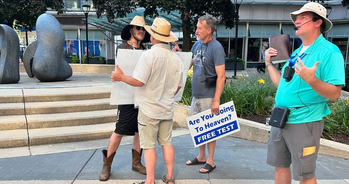 " Exciting first day - Open Air Preaching on the Streets in Milwaukee at this year’s Republican National Convention. The Gospel being preached brings about many Gospel Centered deep and personal conversations as the Holy Spirit illuminates the Word being heralded. “but these are written so that you may believe that Jesus is the Christ, the Son of God, and that by believing you may have life in his name.”