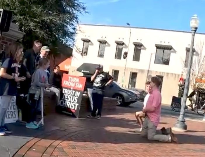 Earlier, I had a conversation with two men who were supporting homosexuality and abortion. One of them laughed while twisting the Word of God. It was then that the Lord sent Hunter and Dalton, who were curious about the abortion sign. I joined their conversation, which led to sharing the Law and the Gospel, and even the two men who initially scoffed sat and listened. This was God’s kindness to all of them—to hear about the greatest demonstration of love the world has ever known: the Cross of Christ.