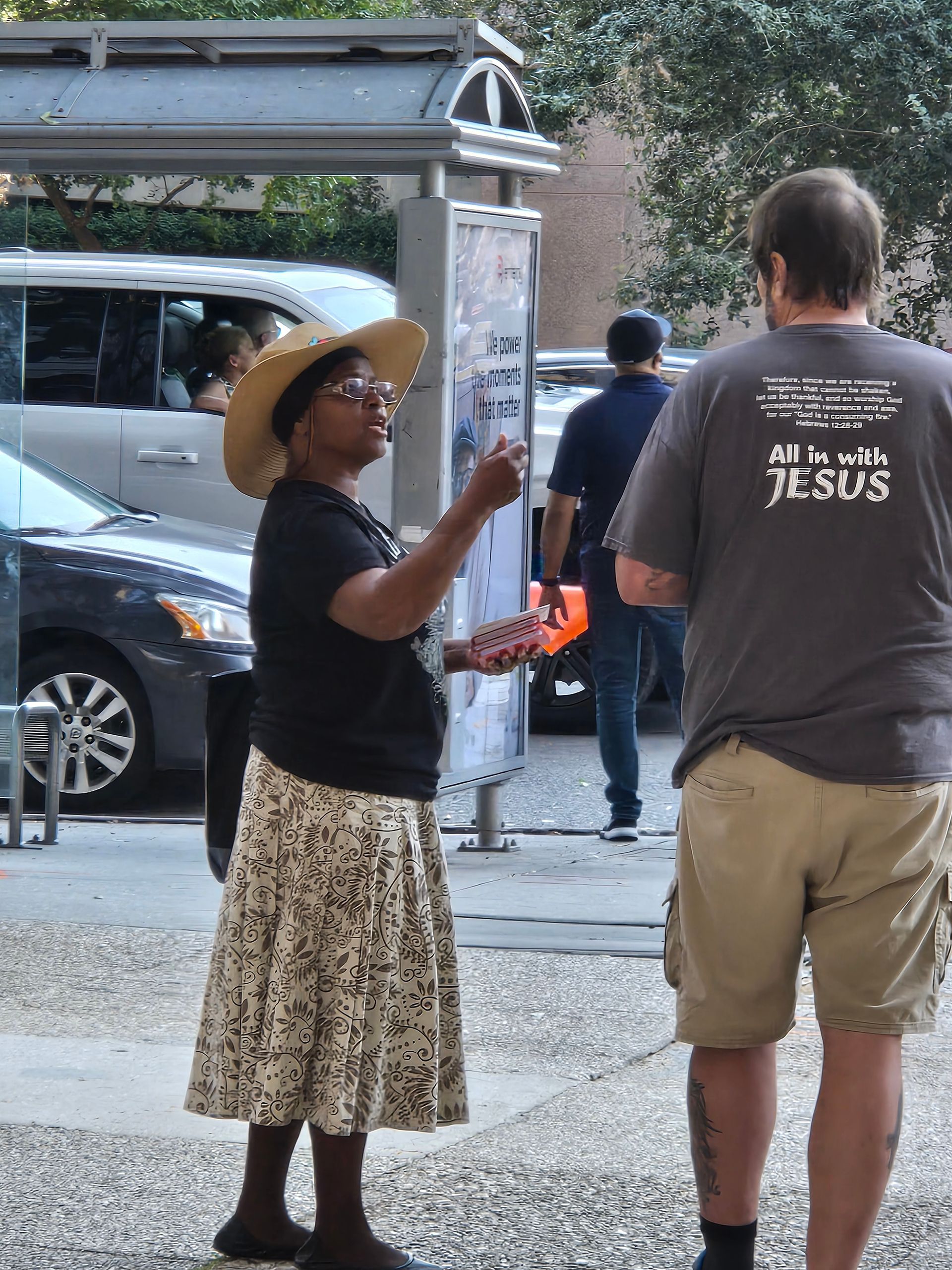 On Sunday in New Orleans, Harvey, Lewis, Jimmy and David were ambassadors for our Lord Jesus Christ. Over 100 Gideon bibles were given out, along with tracts from Living Waters and Chapel Library.