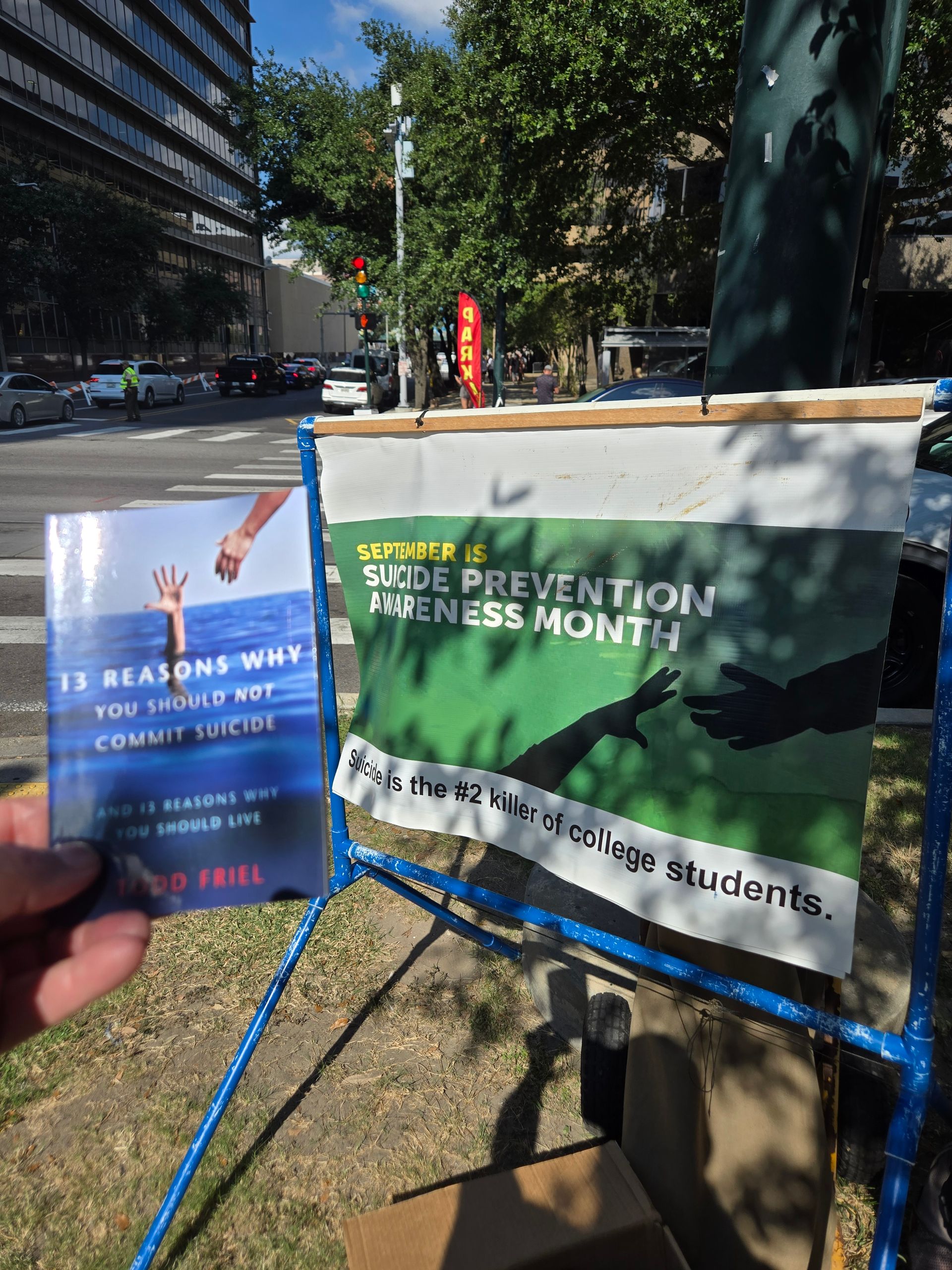 In New Orleans yesterday, one brother stopped me again to say, "Thank you very much for what you guys are doing." While preaching about Jesus Christ, many people were seen nodding their heads in affirmation. Many others jeered. Several others doubled back to receive the materials we were distributing. Several people approached Lewis to ask for prayer. One man gave me a big hug. Half a case of Bibles and half a case of "13 reasons why you should not commit suicide, and 13 reasons why you should live" were given out. We're still fishing for men, David