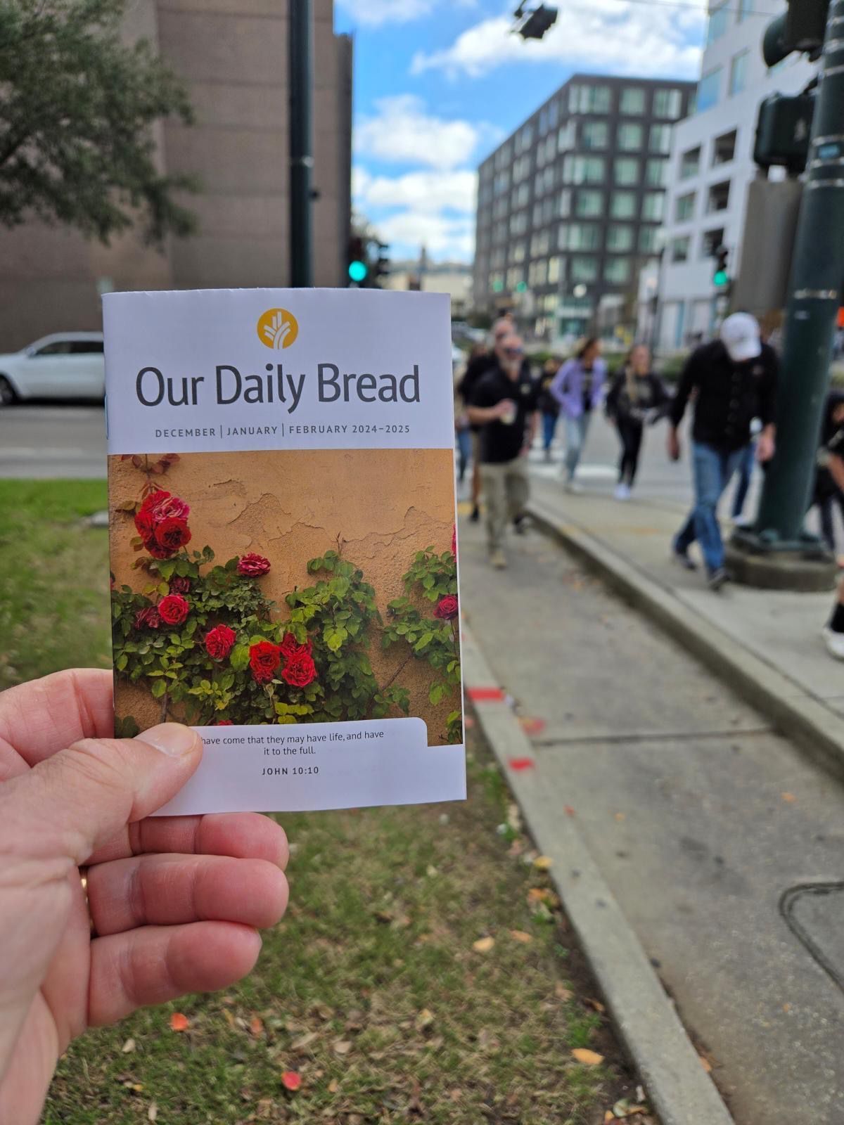 Sunday in New Orleans was the game between the New Orleans Saints and the Las Vegas Raiders. At the intersection of Garod and Loyola Streets, one hundred Our Daily Bread devotionals were distributed to the sports fans. The topic IS JESUS ENOUGH was preached in the open air. If you lost everything, would Jesus be enough? Many fans commented, "That's a good question. I don't know."