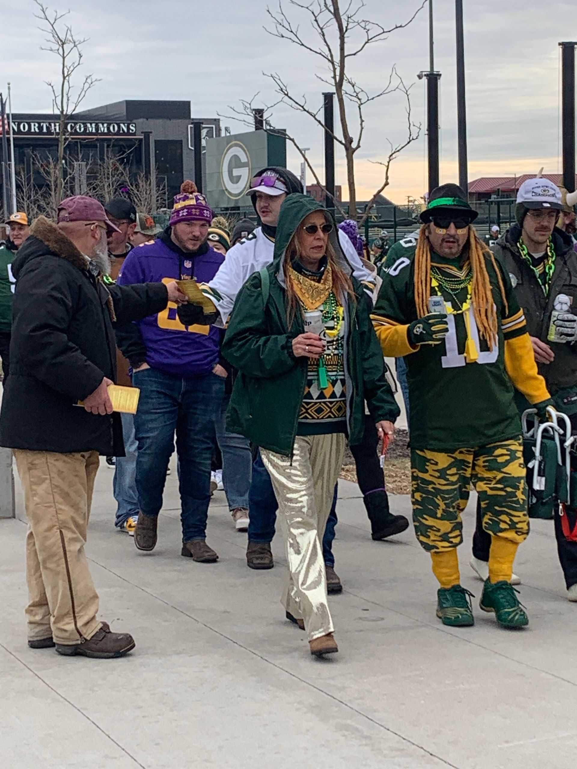 Like the postal service, neither rain, nor snow, nor sleet, not hail; will stop the packer fans or the gospel going forth. We had some mocking but also some great encouragement from those stopping by to share their thanks.