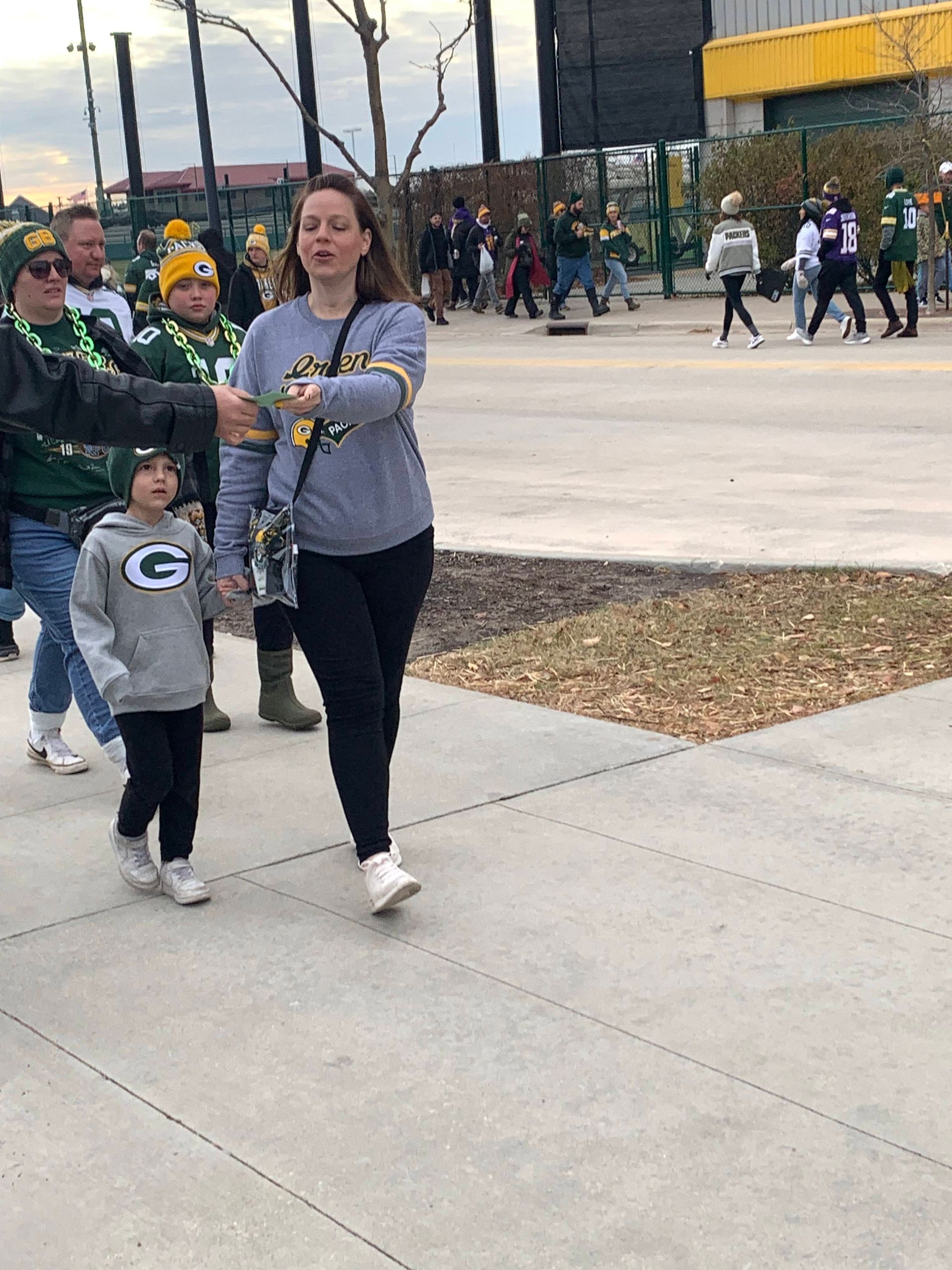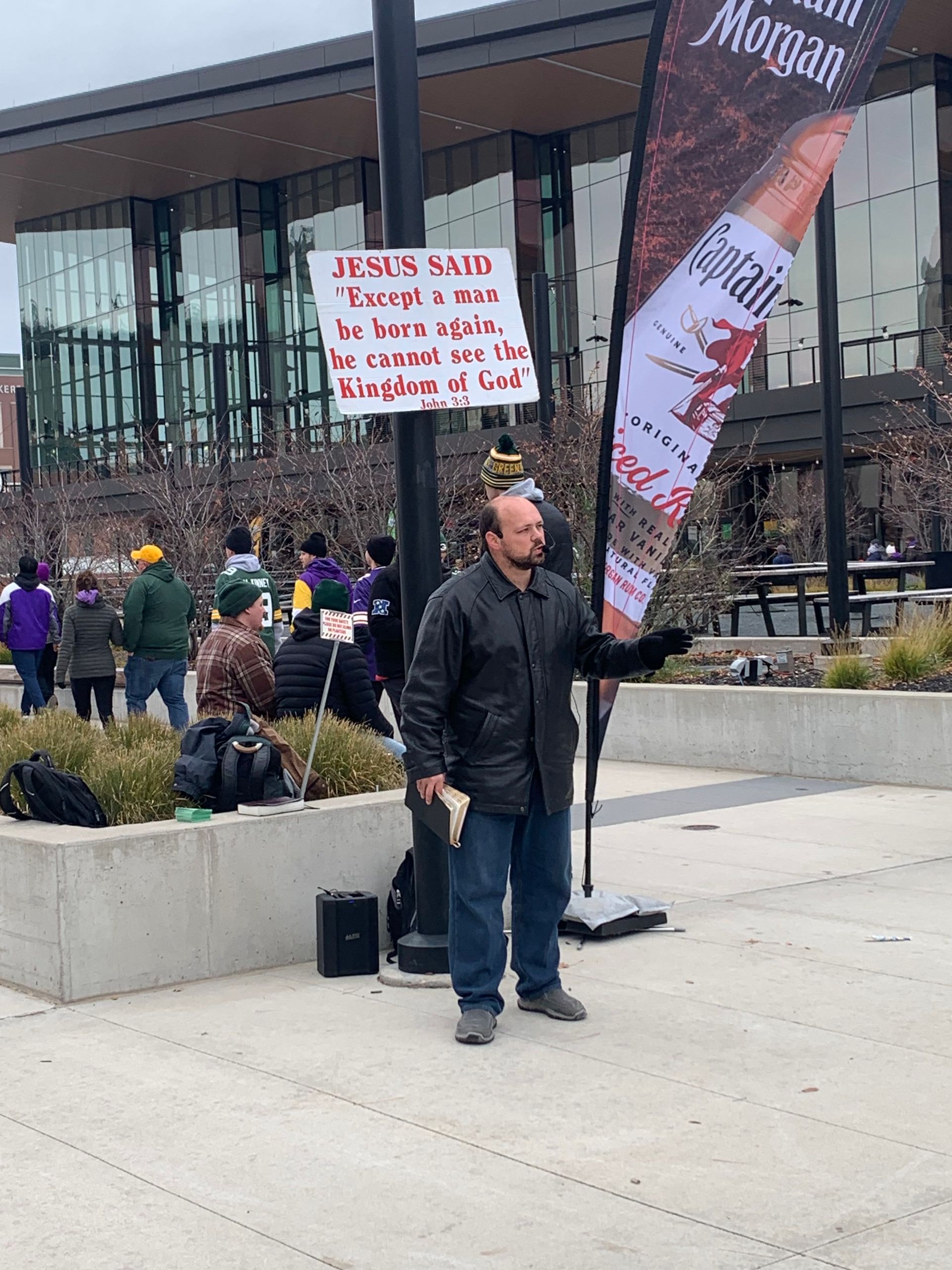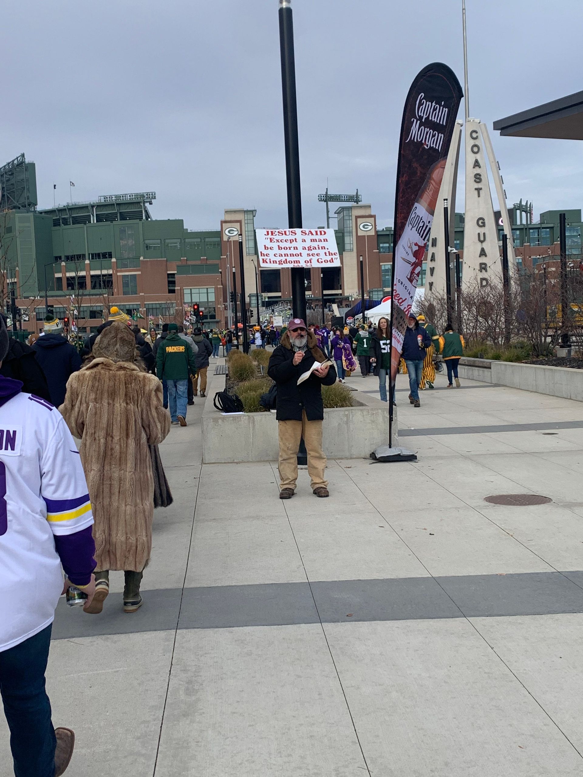 A couple of comments from fans attesting to our consistency "They are always here." Even a Minnesota Vikings fan commenting that preachers are here like in Minneapolis. A Vikings fan came to give me with a huge hug and encouragement for being out there during game day.