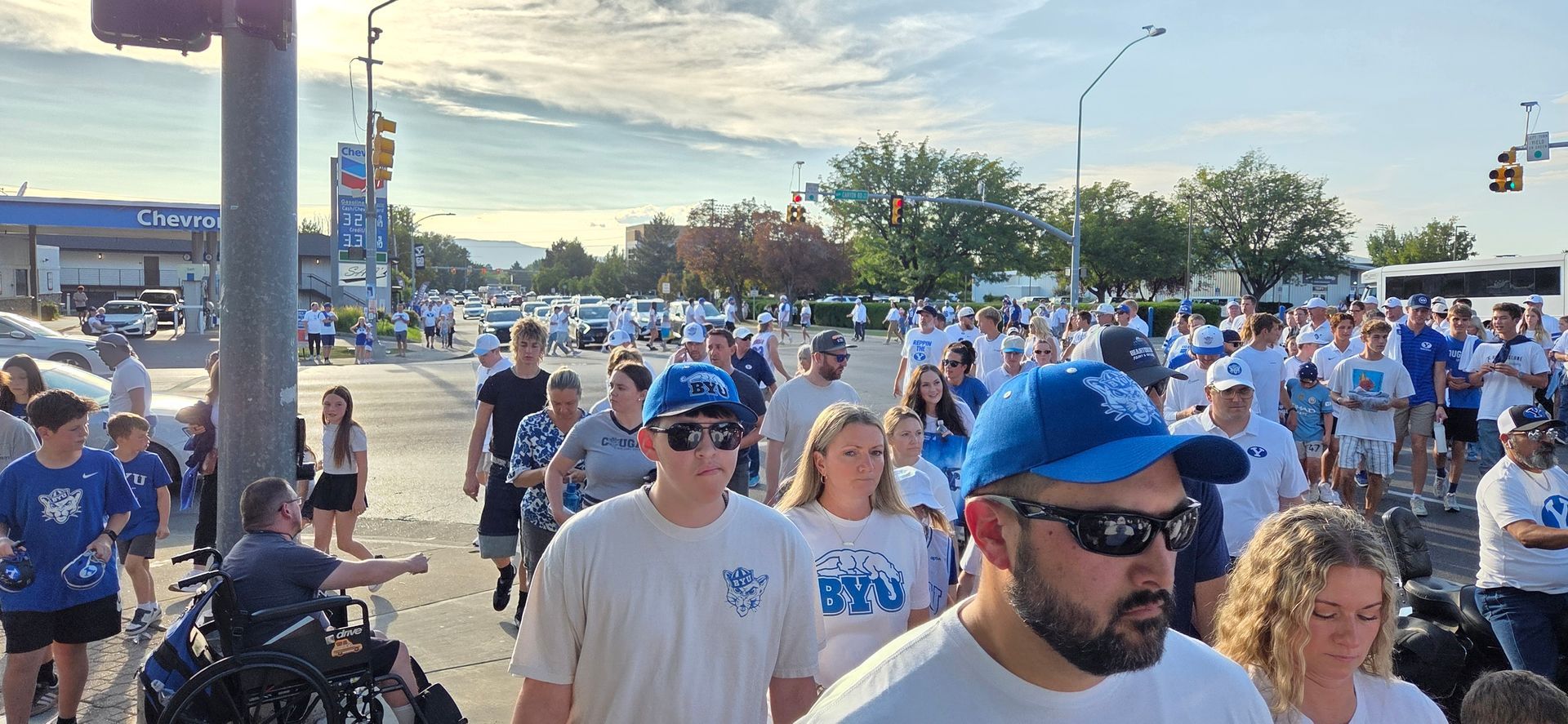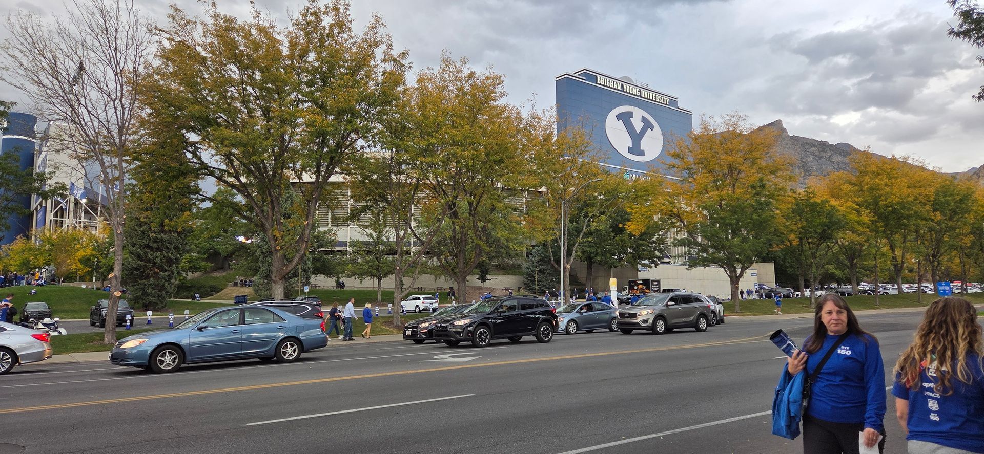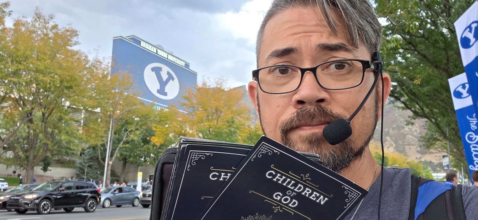 Crowds are pretty good for the first home game. Bro Ed and I are on a busy corner directly across from the stadium. Loads of people, majority LDS are hearing the Biblical Gospel.