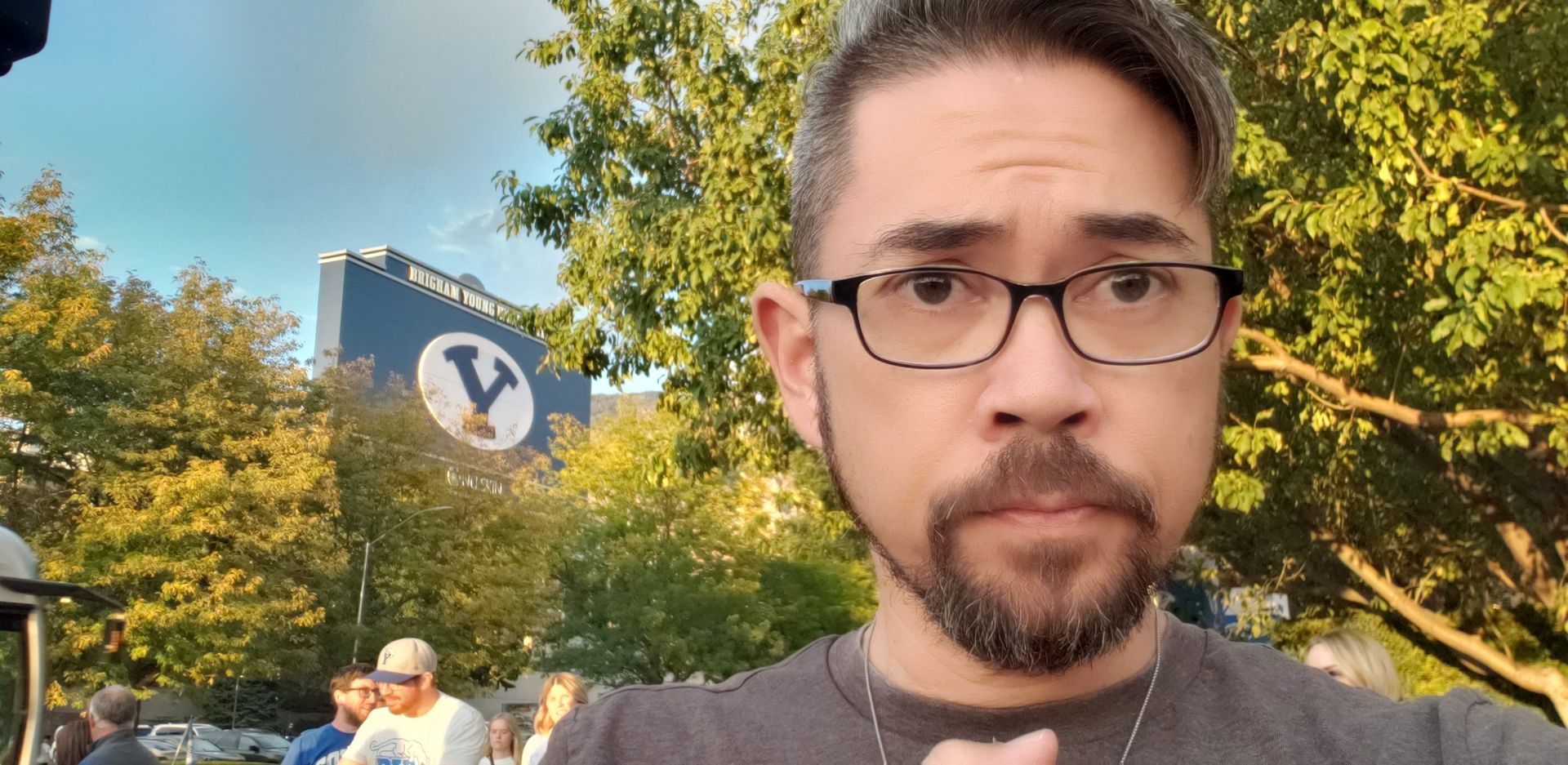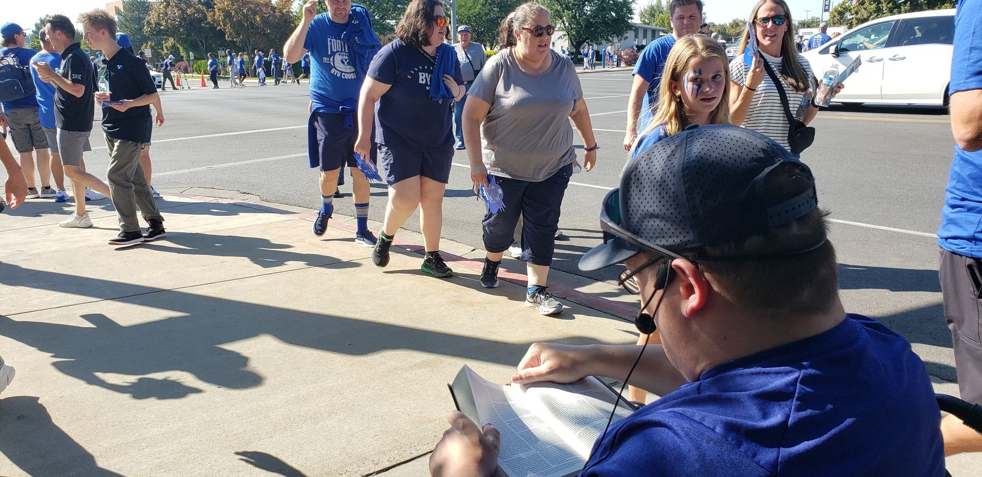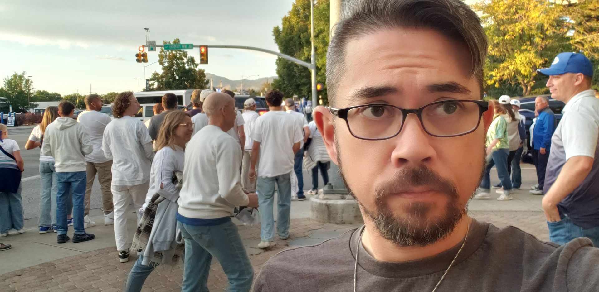 Crowds are pretty good for the first home game. Bro Ed and I are on a busy corner directly across from the stadium. Loads of people, majority LDS are hearing the Biblical Gospel.