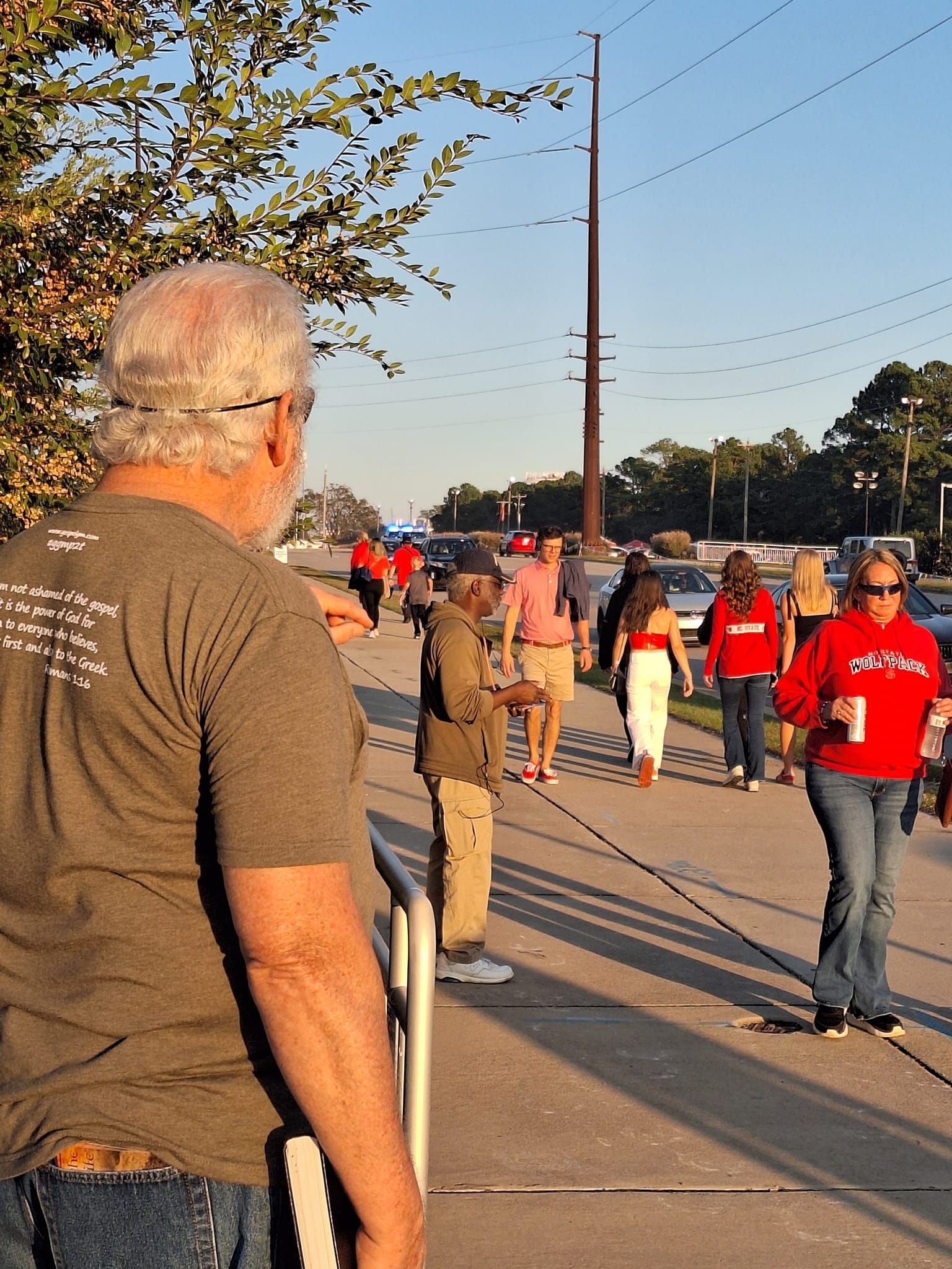 Big crowds at the game today. Many are hearing the gospel on homecoming weekend.