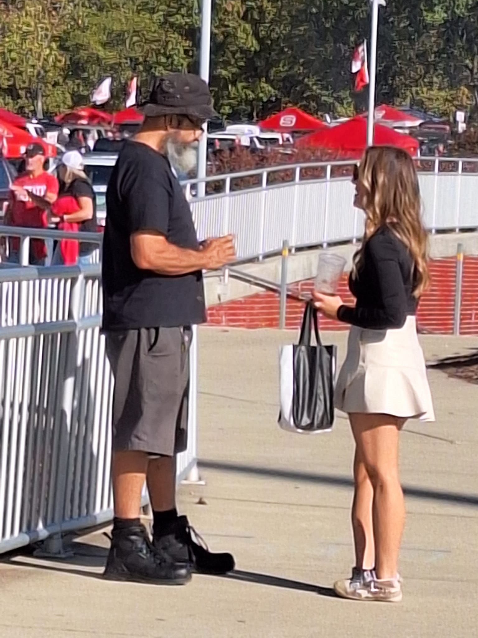 Darrel Davis is making Jesus known to the football fans at the NC State game.