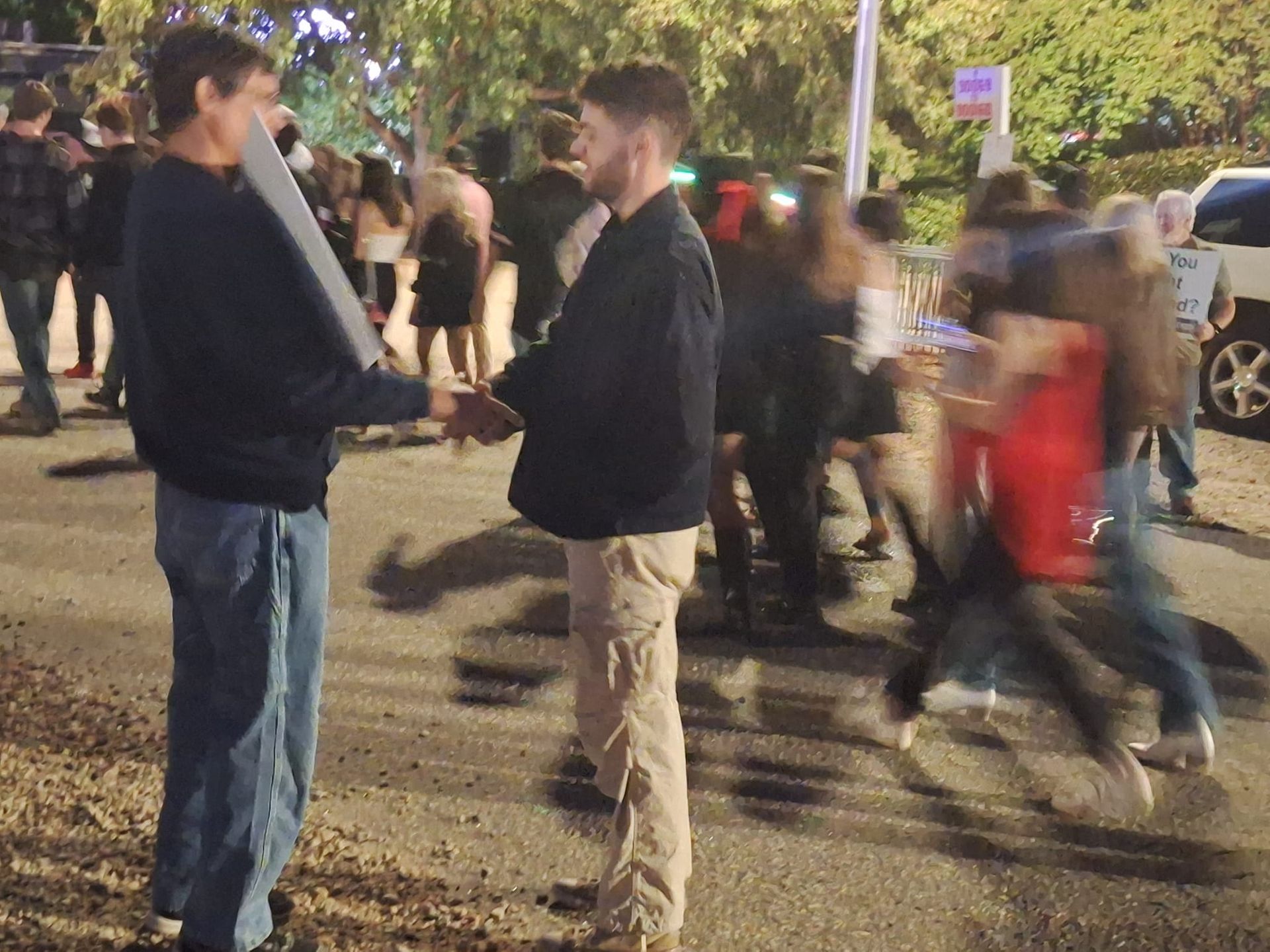 State Police told us if we had any problems to let them know. They crowd was very cordial for the most part. A number of Christians encouraged us and thanked us for being there.