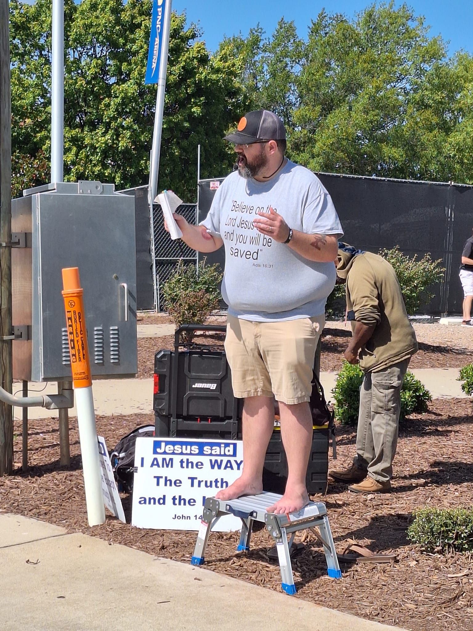 We had a team of for men and preached and passed out gospel tracts for three hours. We were thanked by some fellow believers for being there. No real significant gospel conversations.