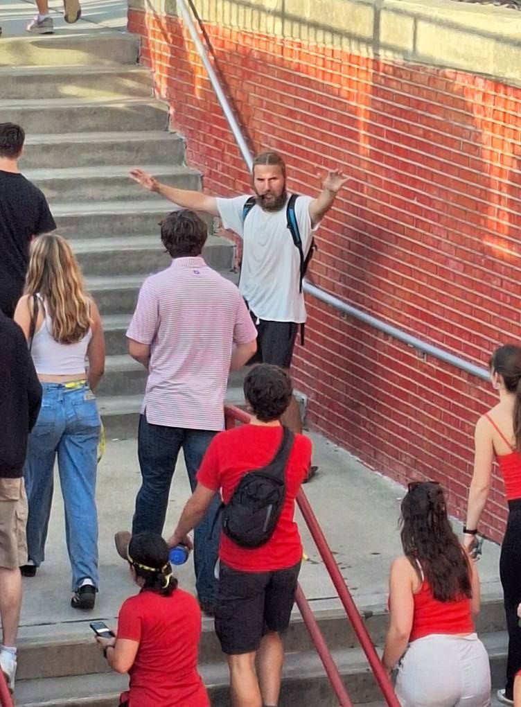 Tommy Waltz is proclaiming Jesus to the crowds at the NC State game.