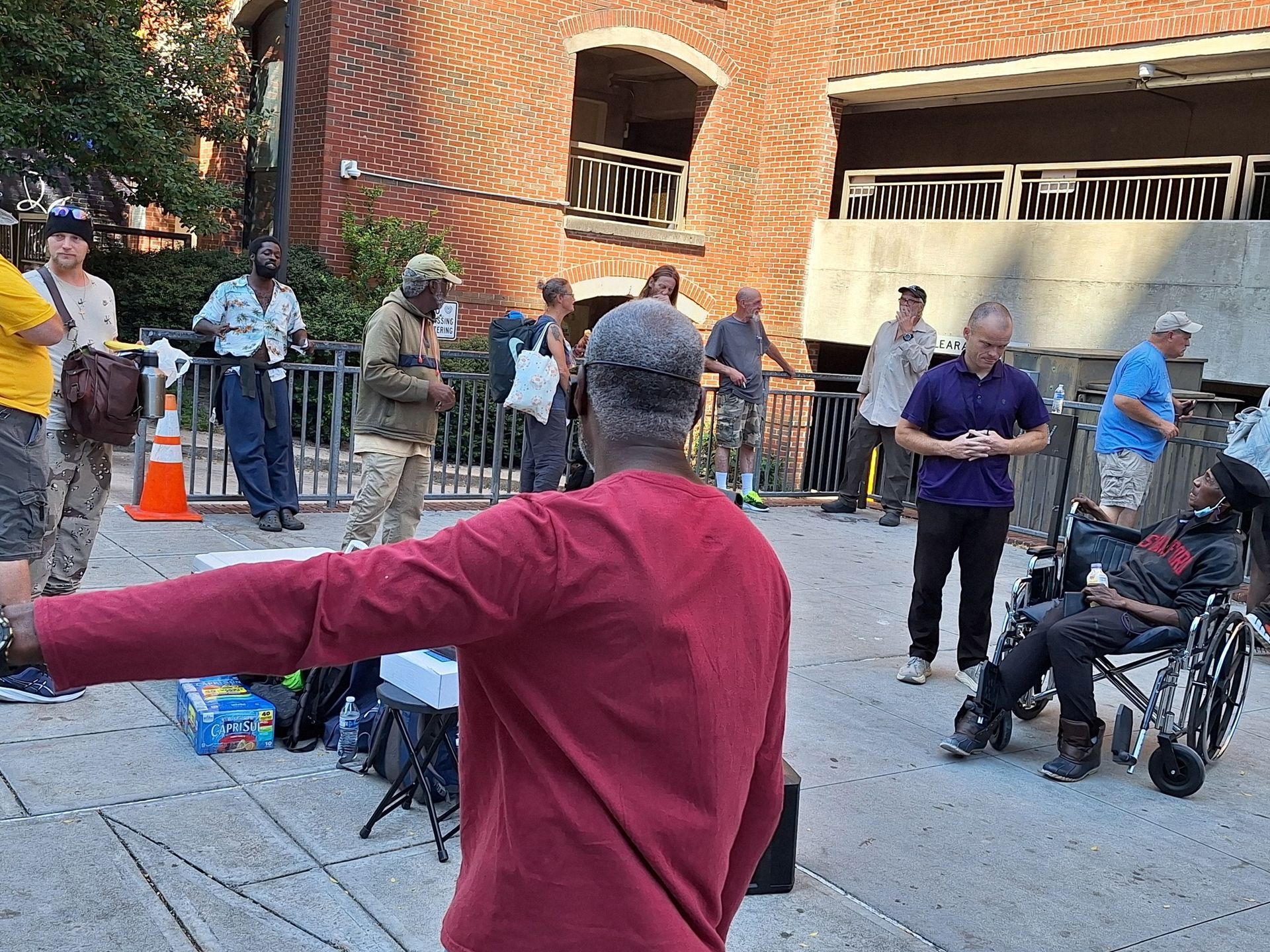 We were blessed with a team of eight men. One man enjoyed being there for the first time. Covered three congested entrance points. Lots of gospel tracts were passed out.