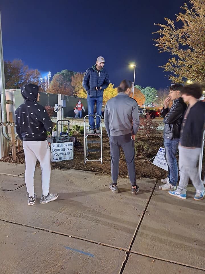 Great night at the UNC/NC State game. Blessed with a team of 10 people. Able to preach at three locations. Lots of tracts went out