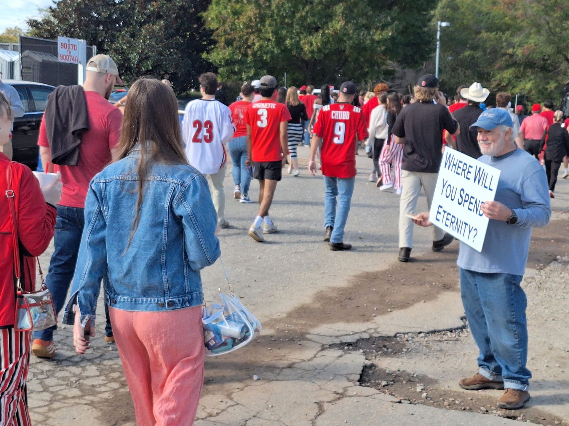 Making the Gospel of Jesus Christ known to those who are at the NC State/ Clemson game today