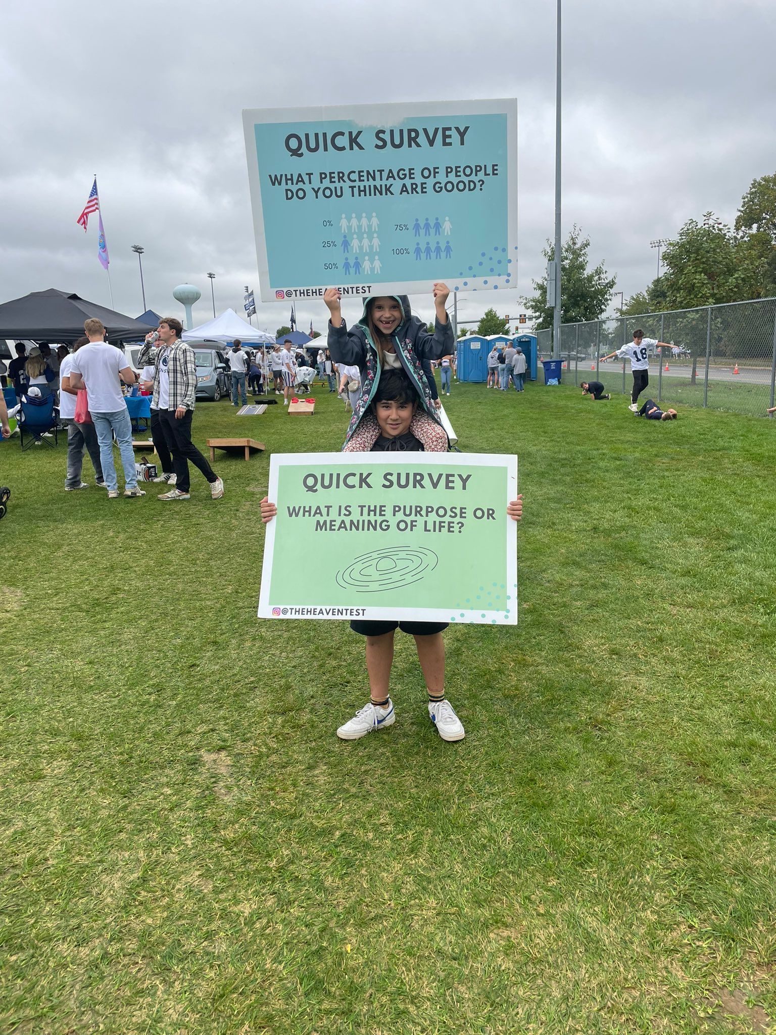 Meredith - middle aged woman, drunk, came and did the good person quiz. She insisted it was 100% and that she was perfect. We shared the gospel and she realized most were bad but still not her. She took a gospel tract and they filmed the conversation so more will hear the gospel :)