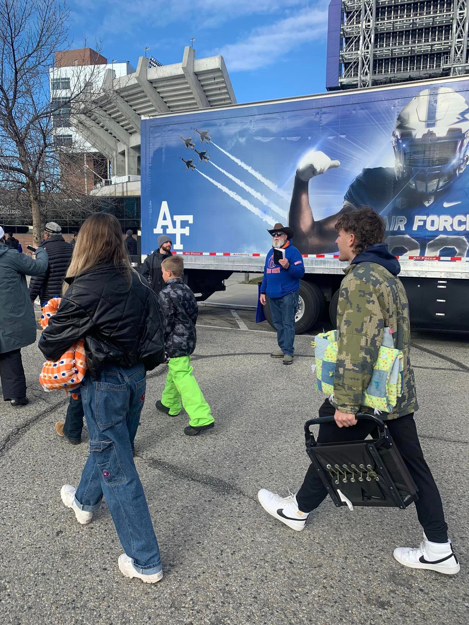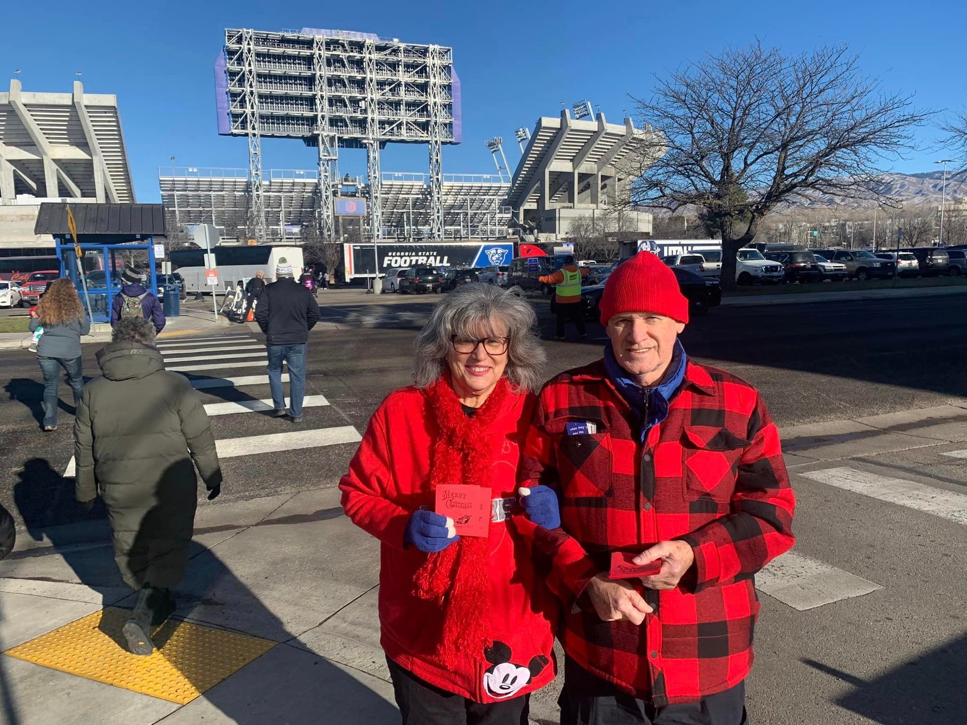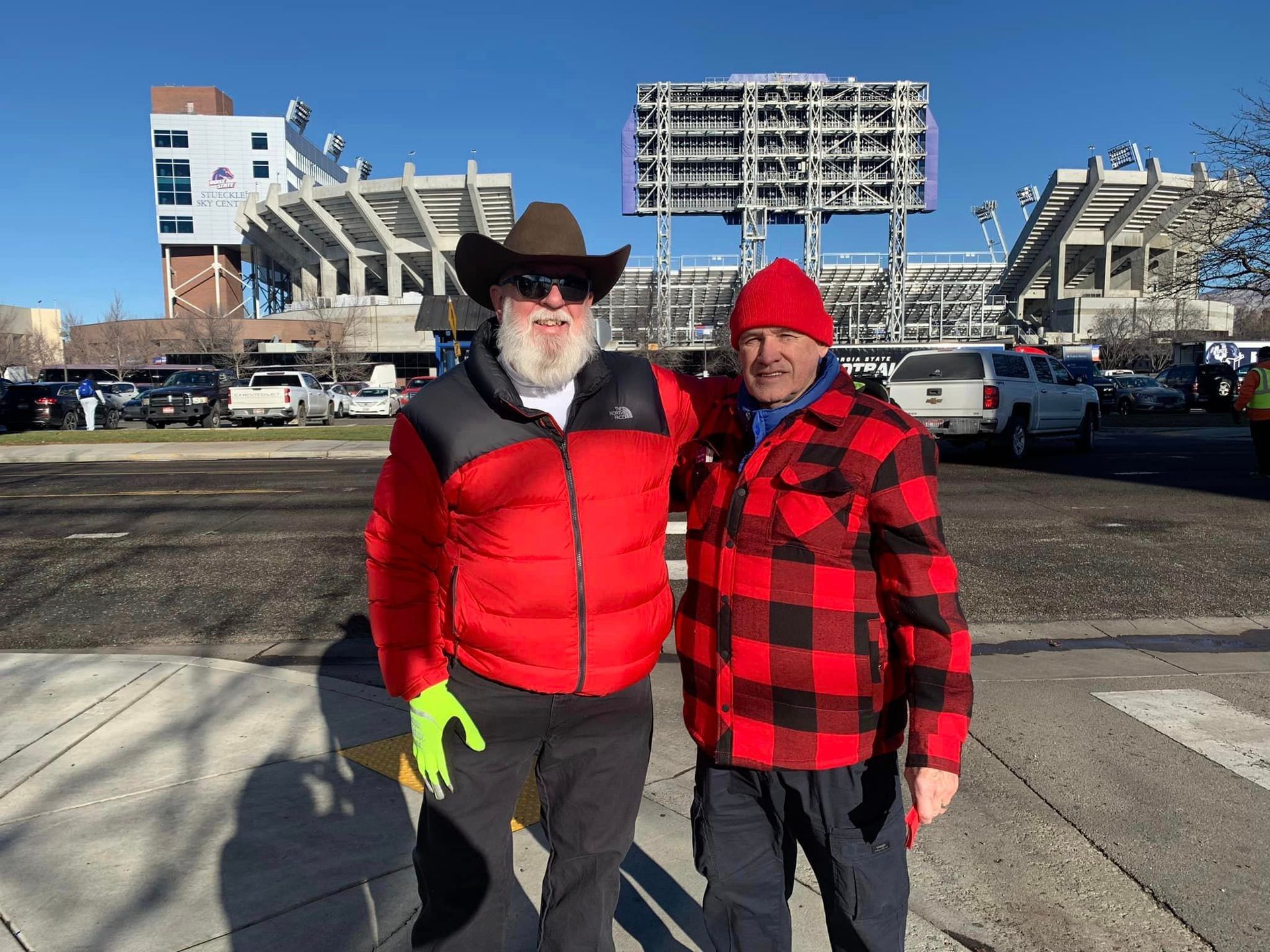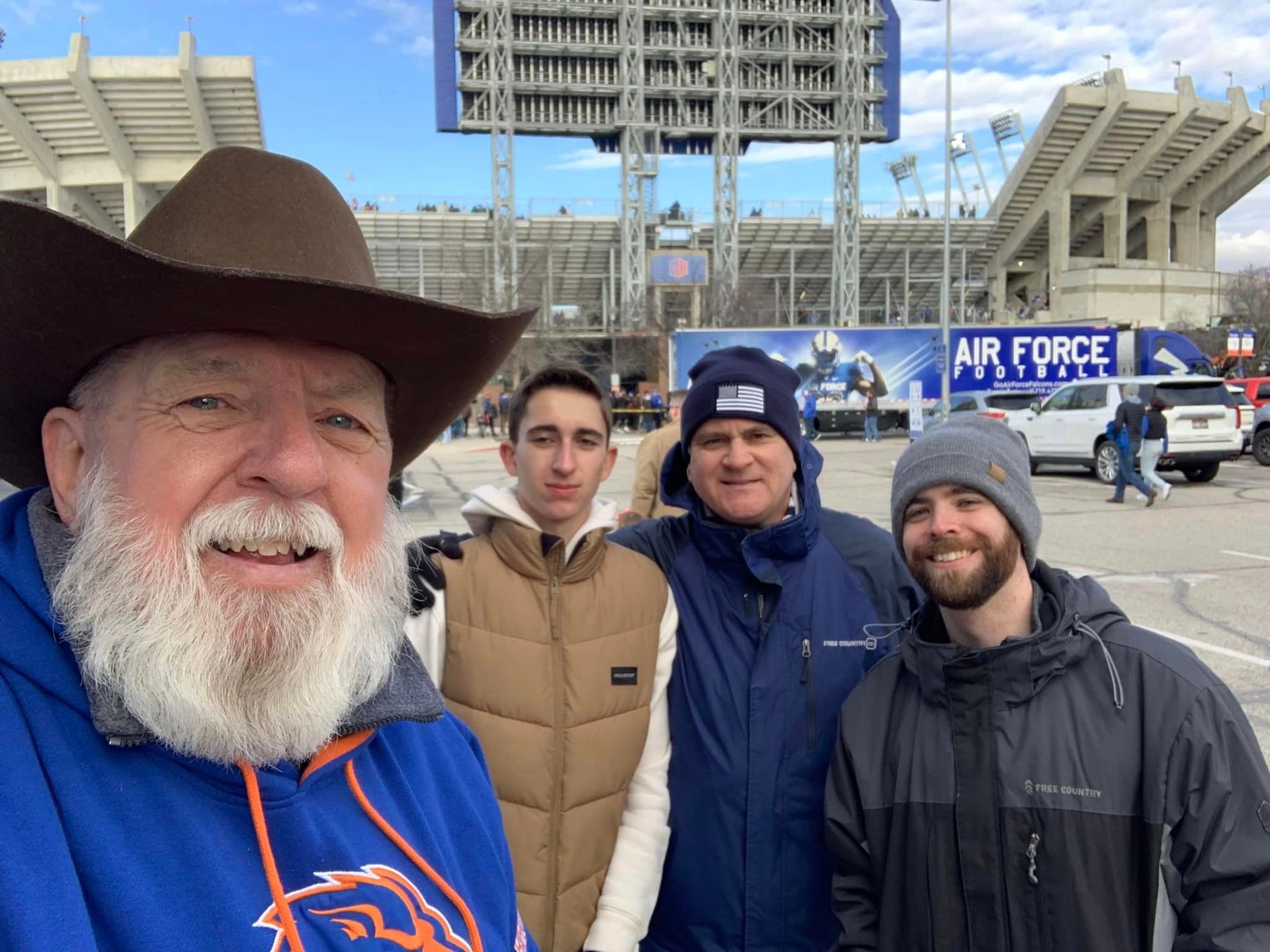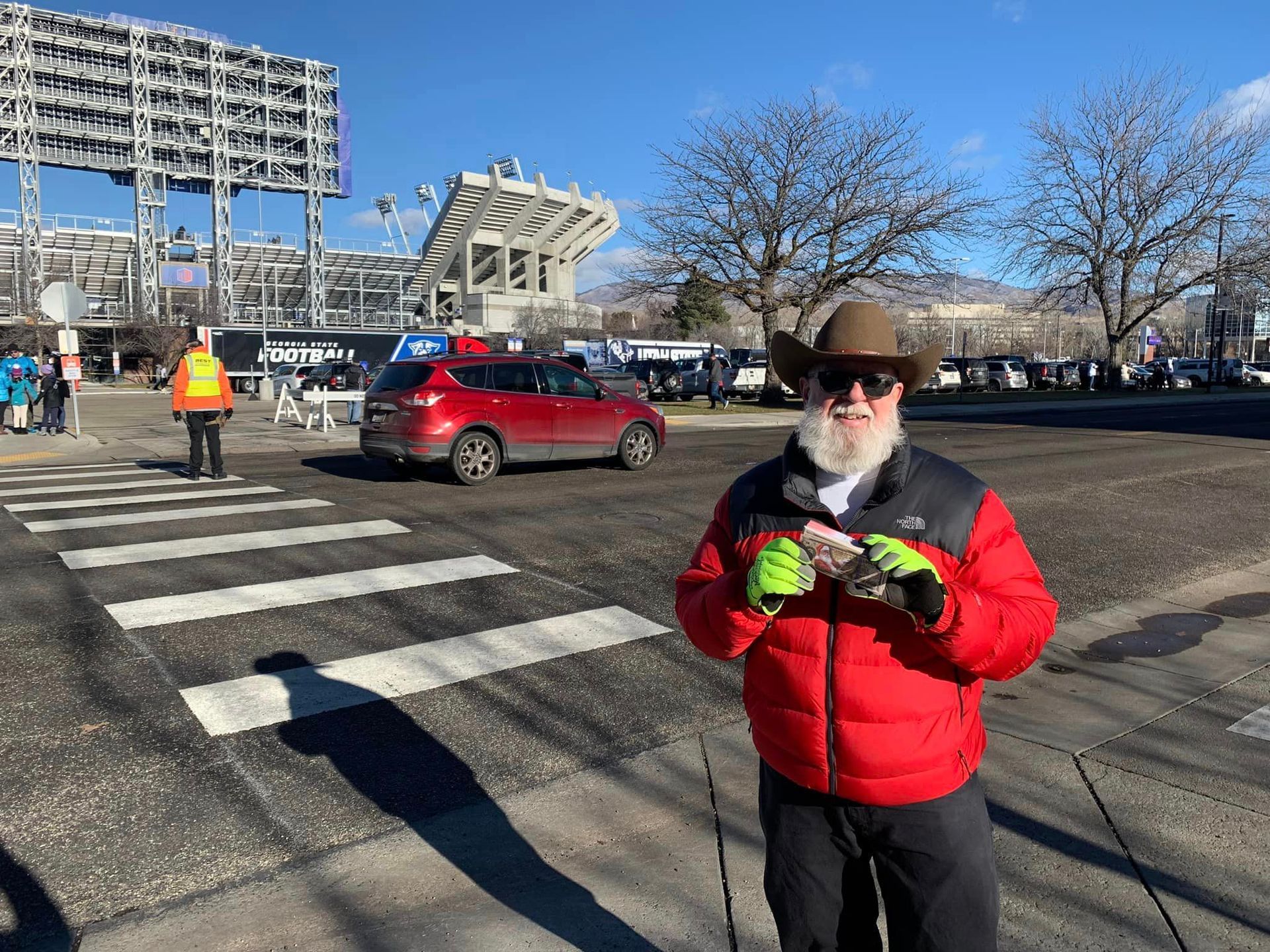 Our SFOI Team for this afternoon’s Air Force Academy game actually consisted of two teams. Robert Viera and his son Phillip, and my team: Dean Juday and Sue Goodrich. Each team outreached separate locations in and around Albertsons Stadium parking lot.