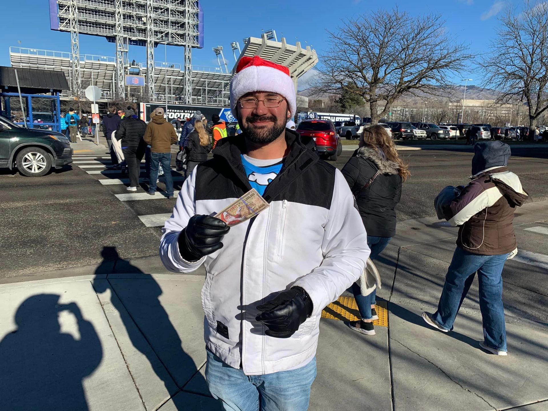 Last night’s BSU game against the University of New Mexico Lobos marked our first and (thankfully) only evening Sports Fan Outreach International (SFOI) outreach of the season. Night outreaches are generally tougher because people naturally tend to be more defensive, and harder to approach, after dark.